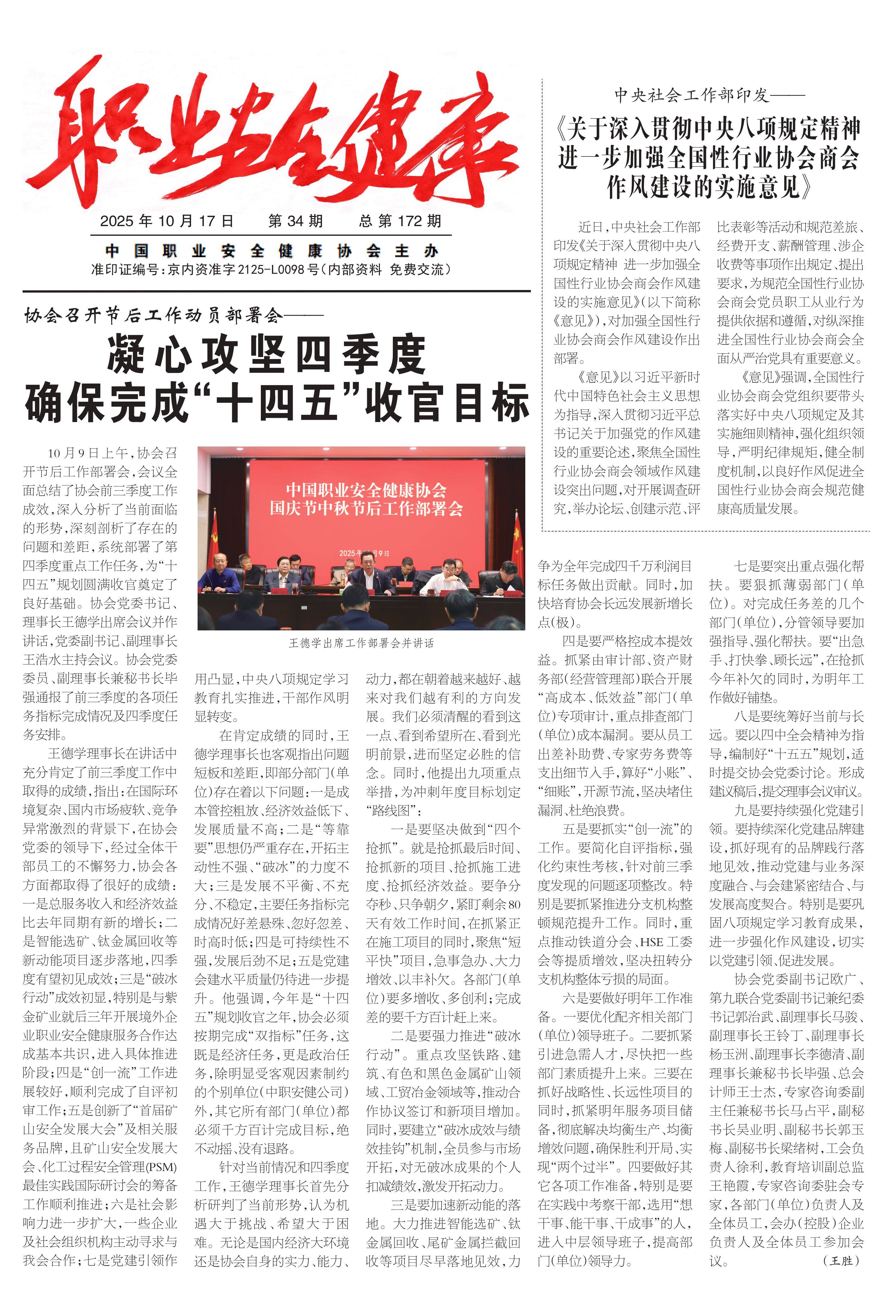 发布时间:2025年10月17日 来源:中国职业安全健康协会