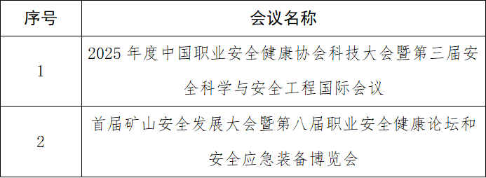 根据《中国科协办公厅关于开展2025年度重要学术会议征集工作的通知》(科协办函创字〔2025〕51号)的要求,中国职业安全健康协会组织开展了中国科协2025年度重要学术会议推荐工作,经专家审核后研究决定,拟推荐以下两项会议,名单公示如下: