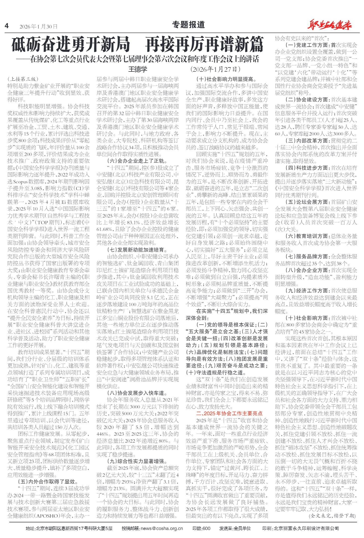 发布时间:2026年1月30日 来源:中国职业安全健康协会