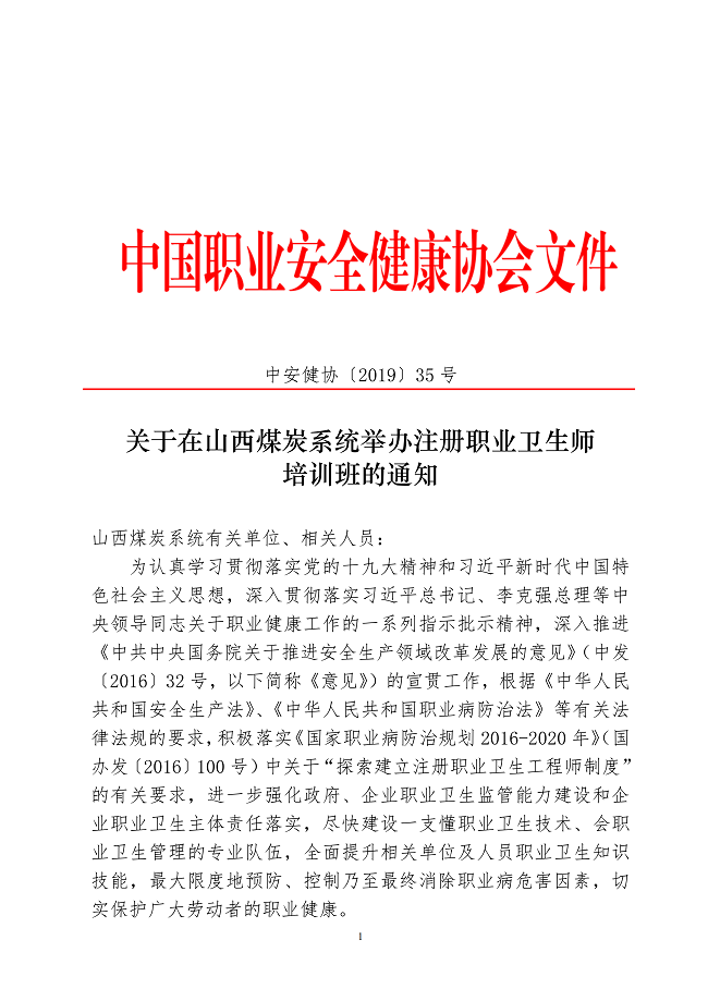 附件:关于在山西煤炭系统举办注册职业卫生师培训班的通知PDF版