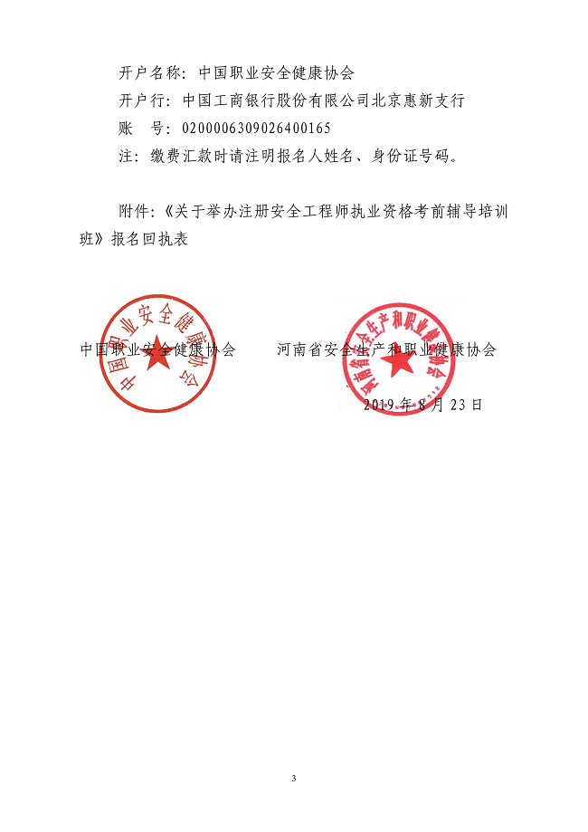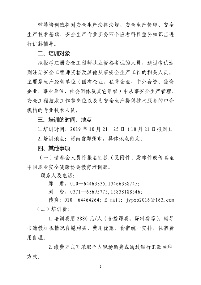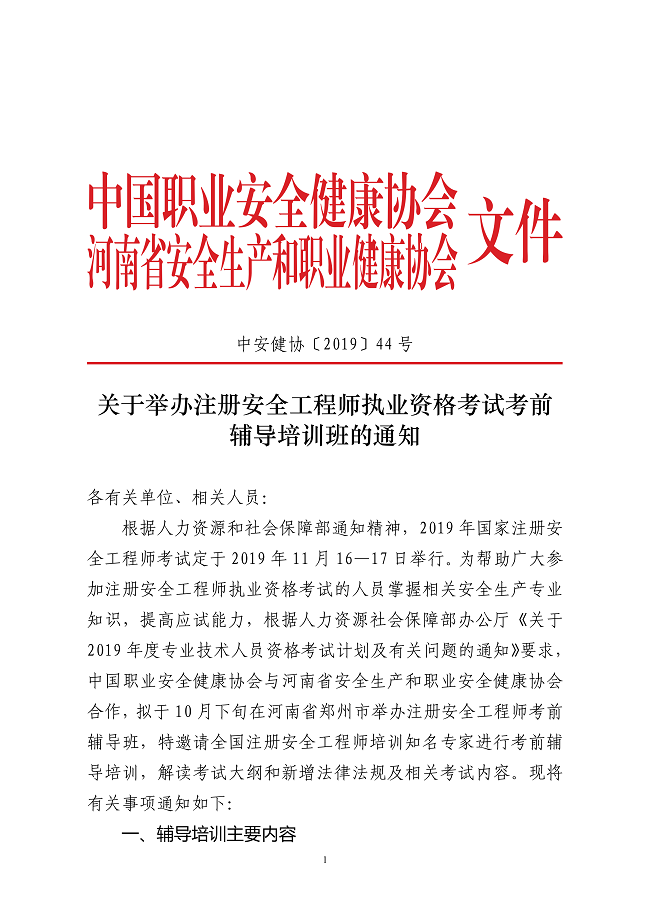 关于在河南举办注册安全工程师执业资格考试考前辅导培训班的通知