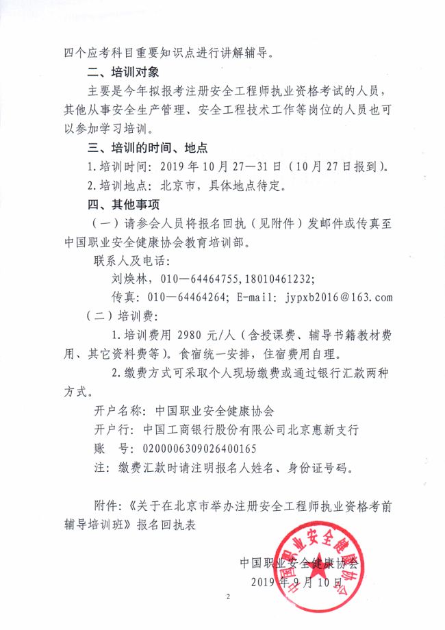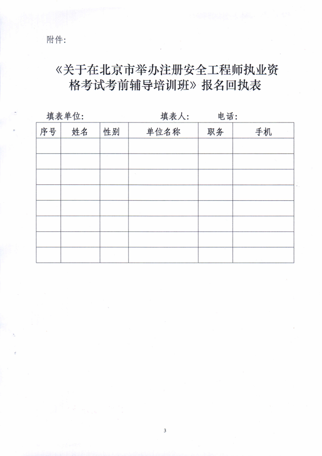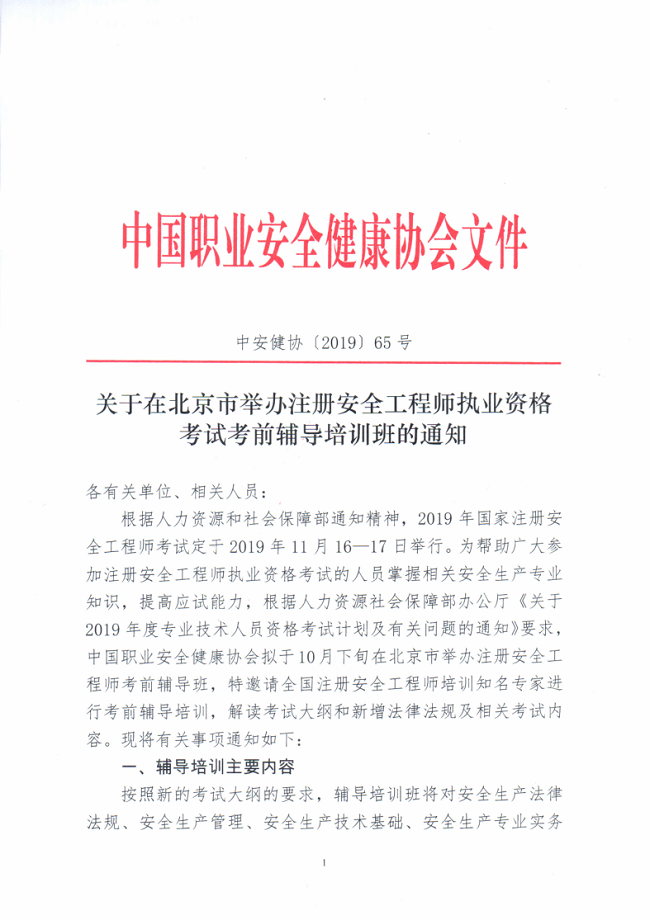 关于在北京举办注册安全工程师职业资格考试考前辅导培训班的通知